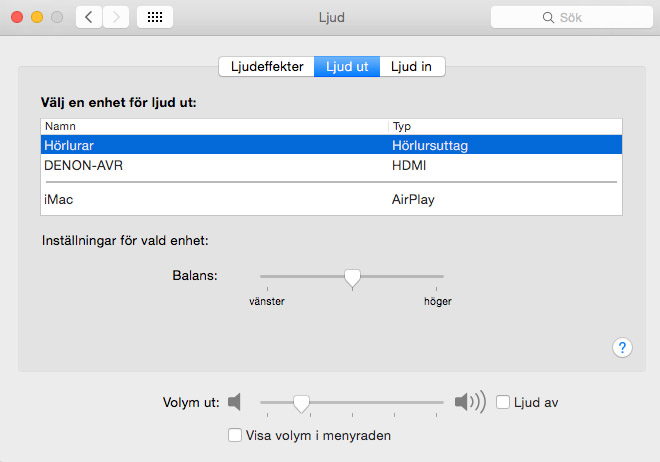 När vi valt rätt ingång på TV:n är det dags att tala om för datorn vart den ska skicka ljudet.